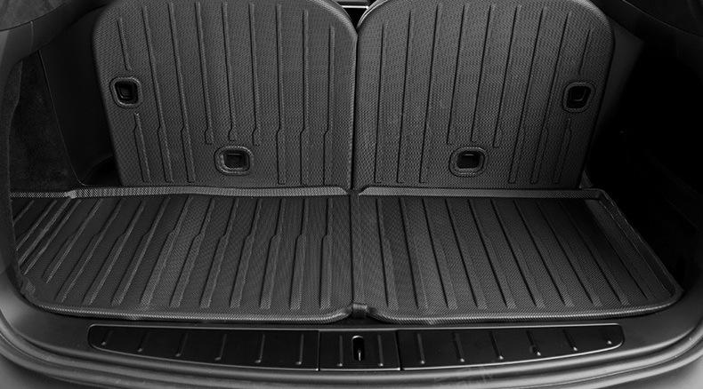 Mata do bagażnika Tesli Model X to niezawodne rozwiązanie łączące praktyczność z elegancją. Jej specjalnie zaprojektowane, podwyższone ranty skutecznie chronią wnętrze pojazdu przed rozlanymi płynami i zabrudzeniem. Dzięki temu zachowasz oryginalną wykładzinę w doskonałym stanie. Matę cechuje ergonomiczne wyprofilowanie, ułatwiające dostęp do schowka pod podłogą oraz precyzyjnie i estetyczne wykonane przetłoczenia.
