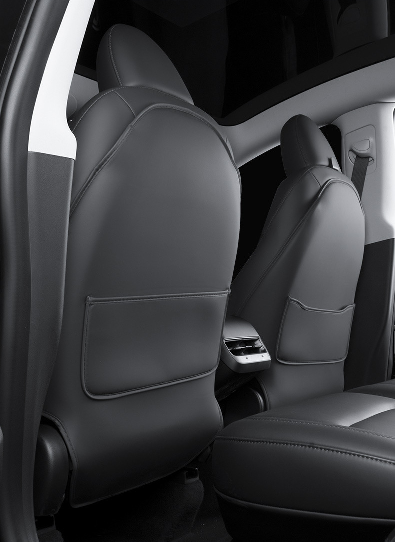 W prosty sposób zapewnij przednim fotelom odpowiednią ochronę przed skutkami kopania przez dzieci. Ochraniacze zaprojektowano specjalnie z myślą o Tesli i idealnie pasują do kształtu oparć. Dodatkowo wyposażono je w szerokie kieszenie, gdzie można z łatwością włożyć nawet większe przedmioty. Ochraniacze wykonano z materiału imitującego skórę. Gładka powierzchnia ułatwia ich czyszczenie oraz konserwację. Dzięki nim Twoje fotele pozostaną w doskonałym stanie na lata.